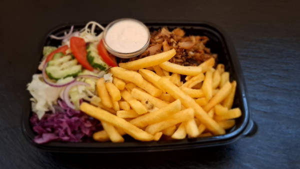 turecký chléb, kuřecí maso, jogurtový dressing, ledový salát, zelí, cibule, salátová okurka, rajče